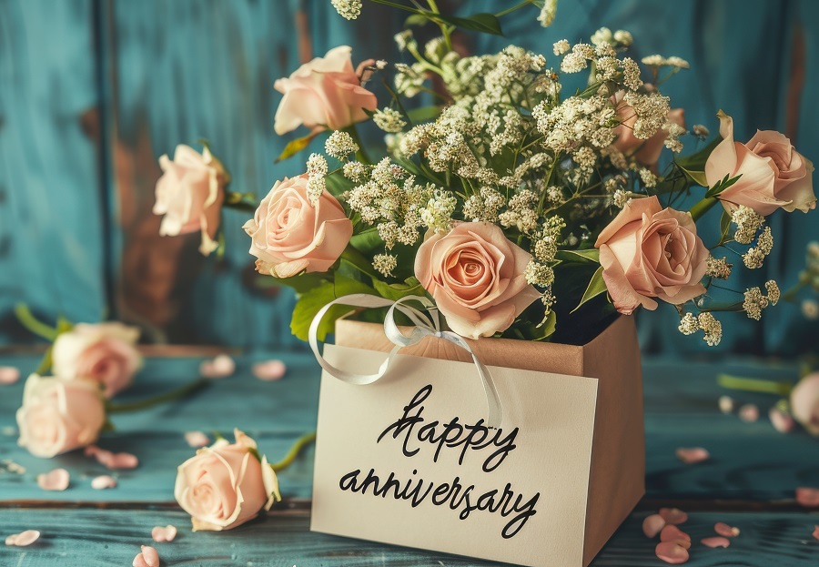 The anniversary celebration reaches its highest point through flower arrangements, which show love while expressing gratitude and creating happiness.